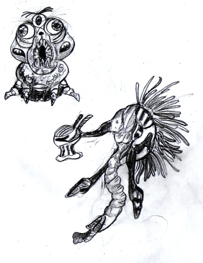 Late night sketches – “Cheesemite” and “Ocean lord”. As suggested by some Discord associates.